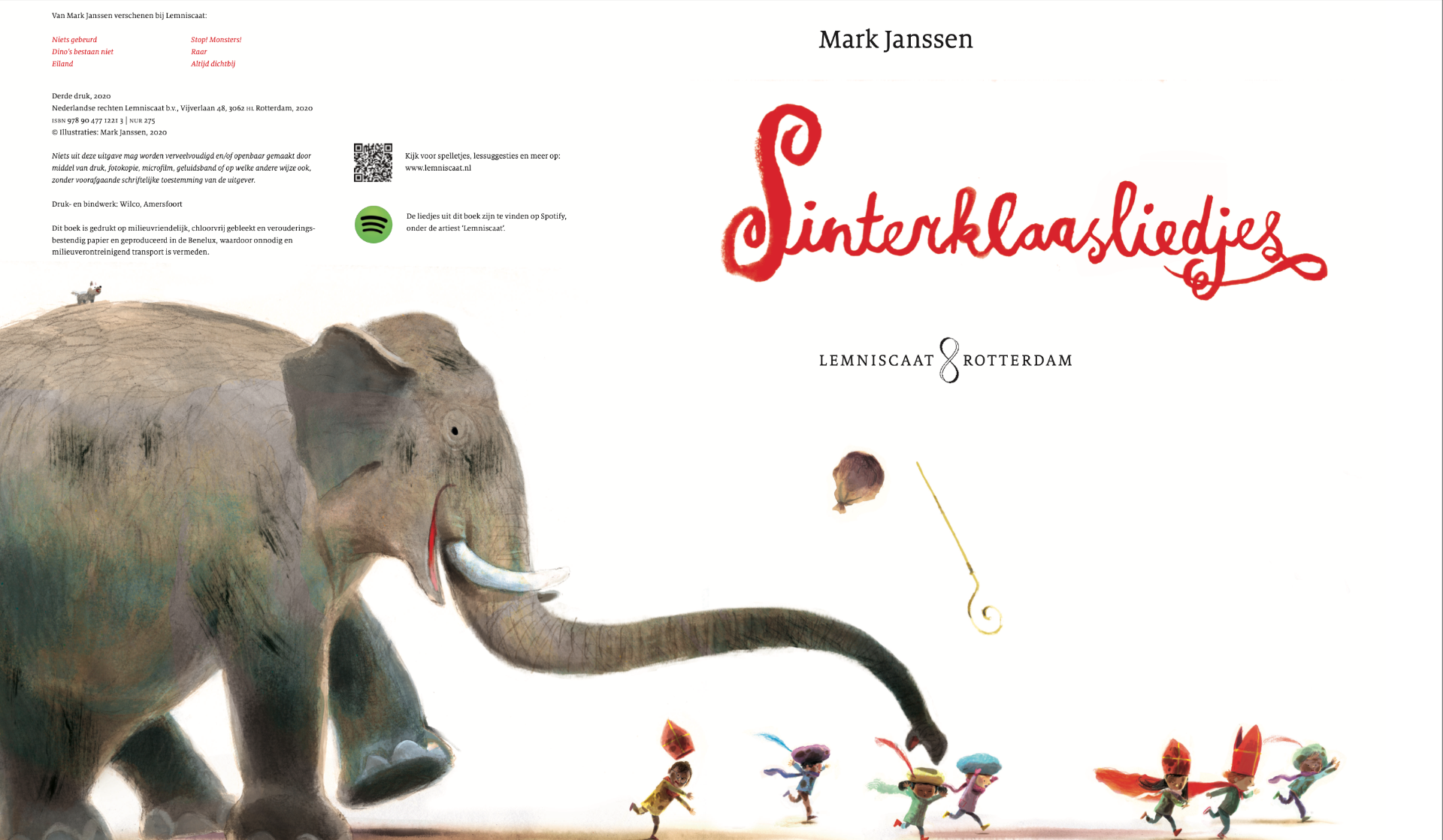 Wat is nou leuker om in de stemming te komen – het liefst al maanden van tevoren – dan Sinterklaasliedjes zingen? Dat doen met een boek van Mark Janssen! Van ‘Wie komt er alle jaren’, via ‘Hoor de wind waait door de bomen’ en ‘Hij komt, hij komt’, tot ‘Hoor wie klopt daar kinderen’ en ‘O, kom er eens kijken’ – het hele Sinterklaasverhaal in liedjes. In de feestelijke prenten van Mark Janssen zien we hoe zeven kinderen, verkleed als sinterklaasjes en pietjes, proberen bij de échte Sint te komen. Maar op elke prent gaat er iets mis… dus je mag raden hoe ze er op de laatste prent uitzien.