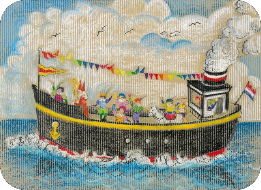 Prachtige ansichtkaart van de stoomboot van Sinterklaas. De kaart heeft afgeronde hoeken en daardoor een luxe uitstraling.