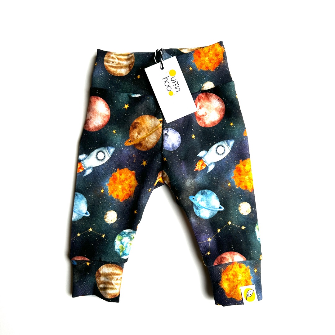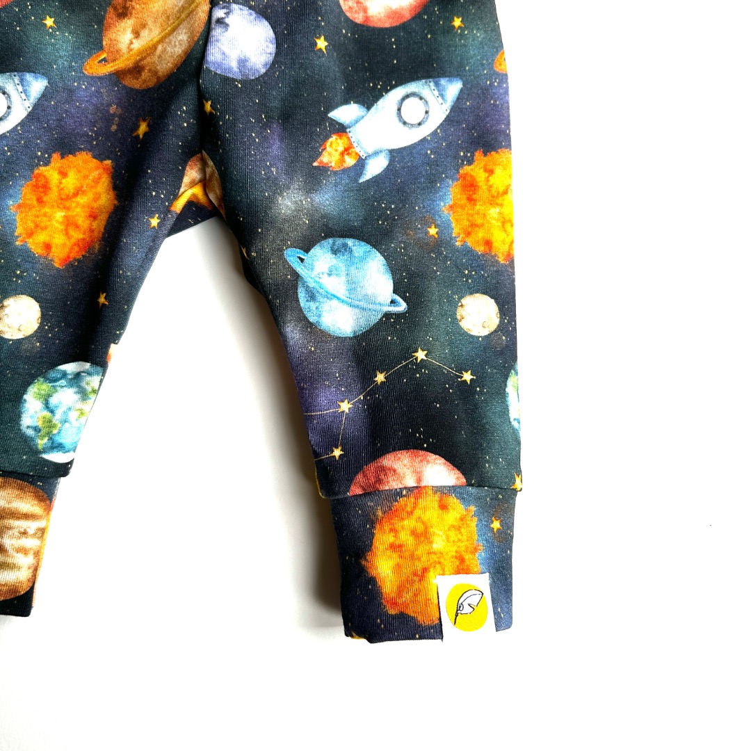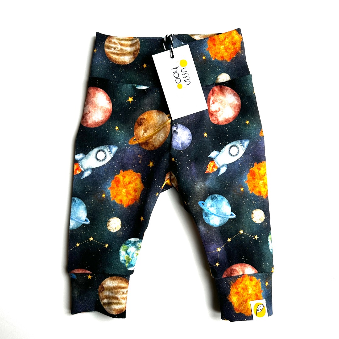 Fly me to the moon! Met dit fijne zachte broekje gemaakt van biologische katoen tricot met galaxy print.