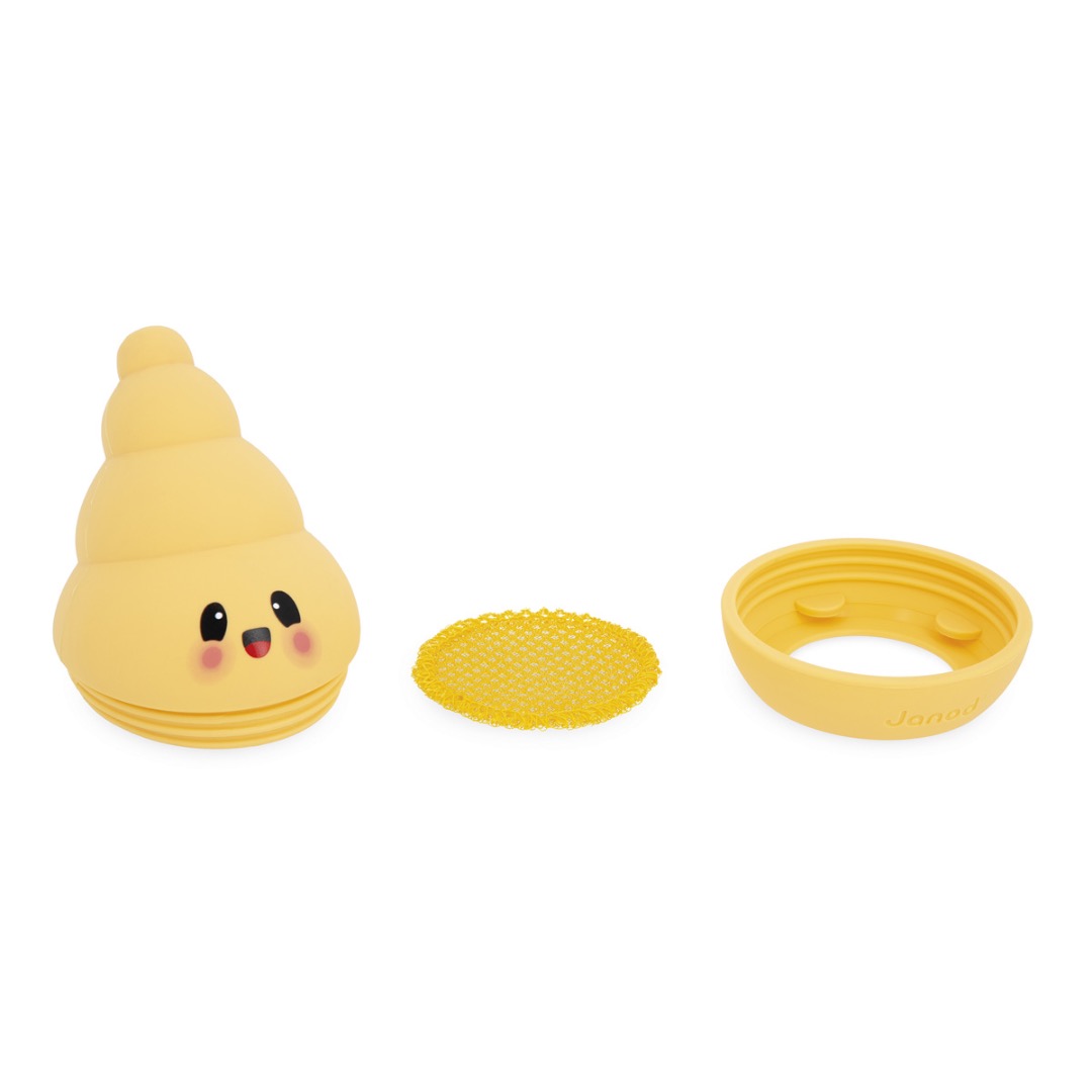 Laat de bubbels stromen met Bullix! Dit schattige schelpje om bellen te blazen zorgt voor extra plezier tijdens het badderen. Bullix maakt van badtijd een actieve en speelse ervaring en prikkelt de verbeelding van kinderen vanaf 3 jaar. Hoe werkt het? Heel eenvoudig. Maak het stoffen schijfje aan de onderkant nat, breng er wat zeep op aan en zet het schelpje in elkaar. Daarna kan het kind Bullix in het badwater dopen en zachtjes bovenaan in het schelpje blazen om bellen te maken. Hoe meer je blaast, hoe meer bellen er verschijnen. Wat een plezier! Kinderen genieten ervan om de bellen om zich heen te zien zweven, alsof het magie is. Dit speelse ritueel maakt badtijd nog leuker en zorgt voor gezellige momenten samen. Naast het plezier helpt Bullix ook bij het ontwikkelen van motorische vaardigheden, coördinatie en gecontroleerde ademhaling. Een slim, zintuiglijk en speels badspeeltje.