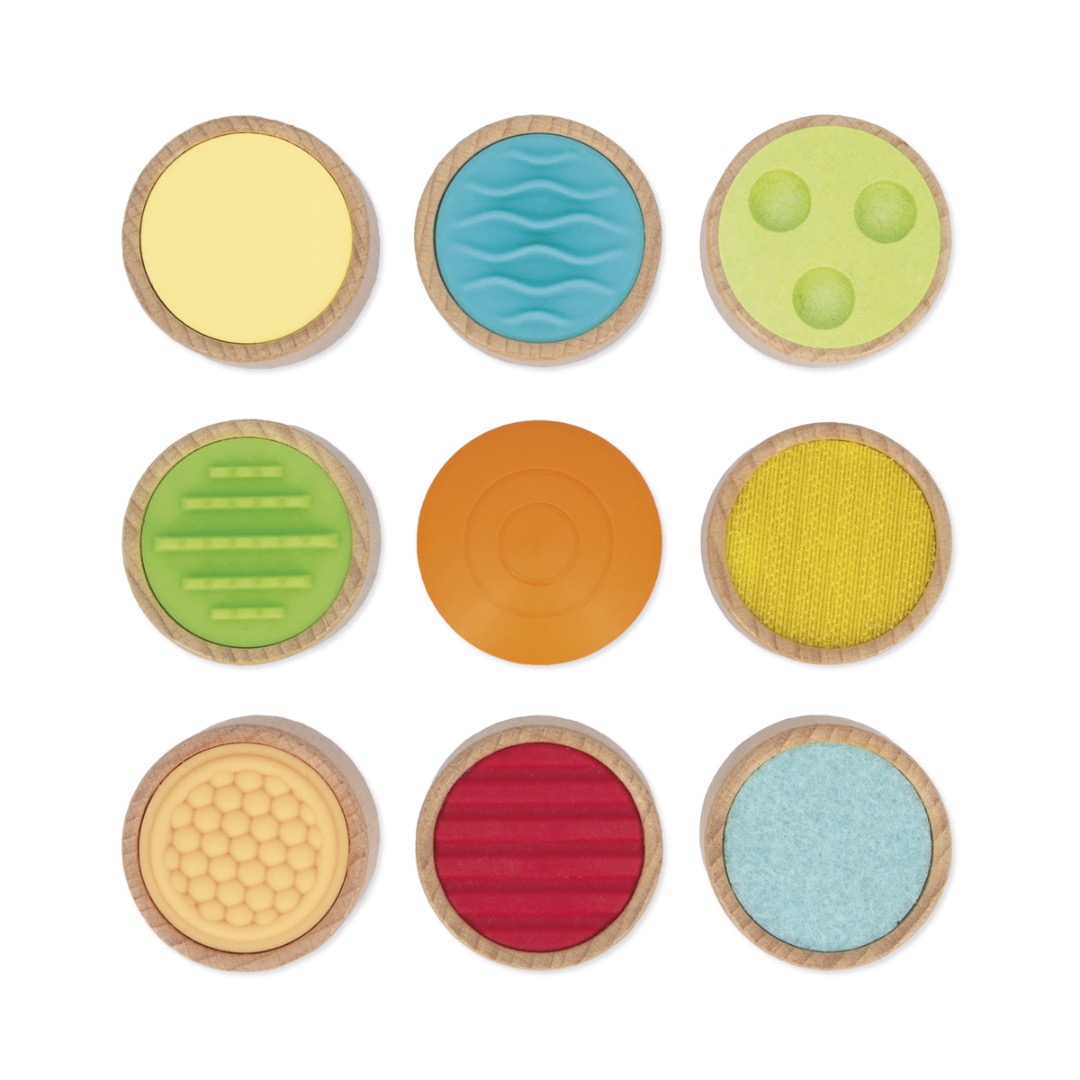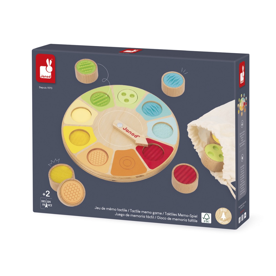 Ontdek het sensorische rad van Janod, een leuk en leerzaam geheugenspel speciaal voor de allerkleinsten. Draai aan de pijl op het bord en ga vervolgens op zoek naar het juiste onderdeel in het katoenen zakje, alleen door eraan te voelen. Het spel bevat 9 houten stukken met verschillende texturen en materialen, zoals vilt, klittenband, een glad oppervlak, getextureerd hout en getextureerde silicone. Op deze speelse manier leren kinderen vormen en structuren herkennen met hun tastzin. Het spel stimuleert de zintuiglijke ontwikkeling en bevordert de hand-oogcoördinatie. Gemaakt van FSC-hout en geschikt als ontwikkelingsspeelgoed voor kinderen vanaf 2 jaar.