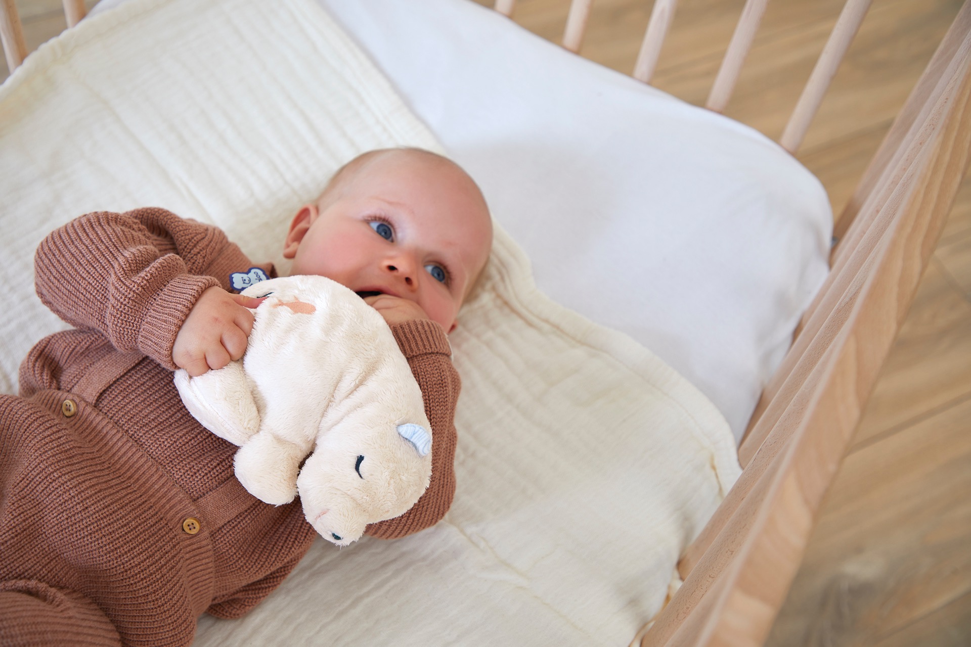 Dit pluche, natuurlijke warmtekussen in de vorm van een ijsbeer, van het mooie Franse merk Kaloo, is een heerlijk knuffelvriendje voor zowel baby's als peuters en oudere kinderen. Ook is het is de ideale knuffel om baby’s pijntjes en kwalen (zoals buikkrampjes) vanaf de geboorte te verlichten. Het heeft een afneembare hoes en bevat een afneembaar zakje. Het zakje gevuld met kleibolletjes en lavendelbloemen kan in de magnetron of vriezer voor een warm of koud effect. De toegang tot het zakje is beveiligd met een klittenbandsysteem om veilig gebruik te garanderen. Met de zachte vacht zal het kind kunnen kalmeren en ontspannen. Het warmtekussen biedt verschillende voordelen, waaronder tijdelijke verlichting van pijn, zoals buikkrampjes. De lavendel helpt baby’s en kinderen in slaap te vallen dankzij de kalmerende en verzachtende eigenschappen. Verwijder het zakje voordat u het in de machine wast. Instructies opgenomen in de knuffel. Afmetingen: 29 cm x 17 cm.