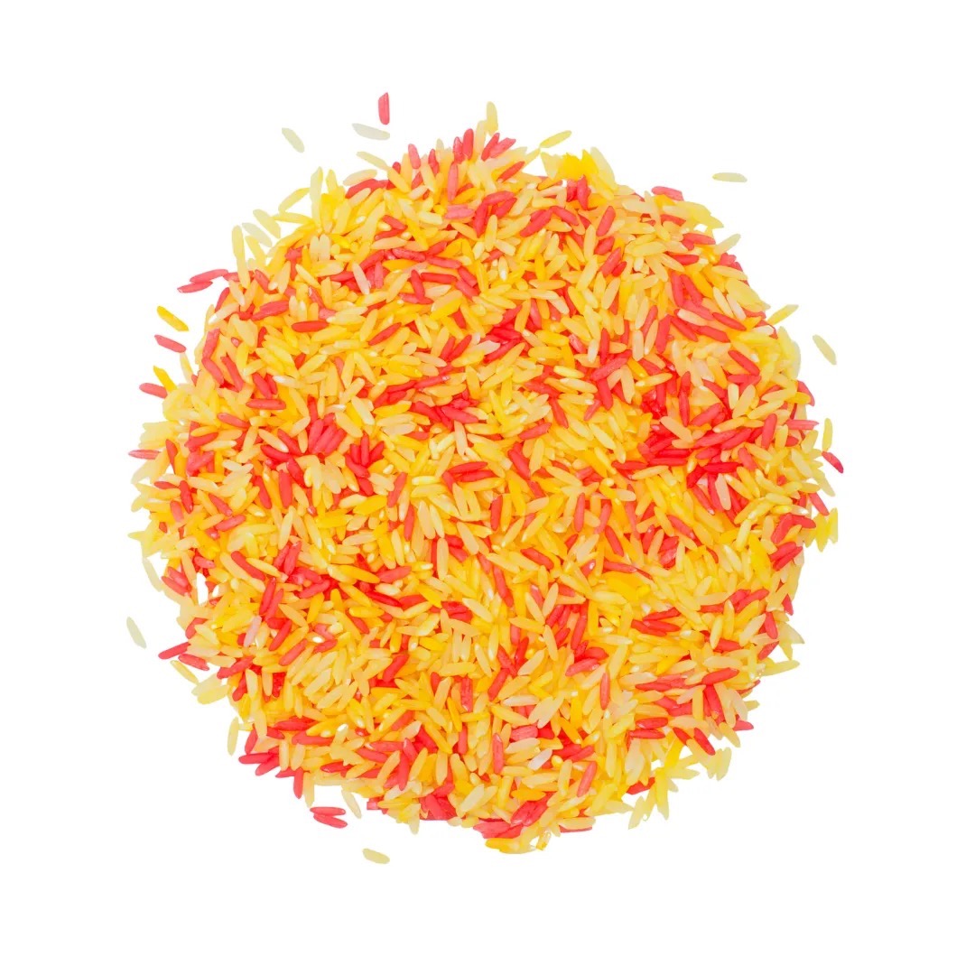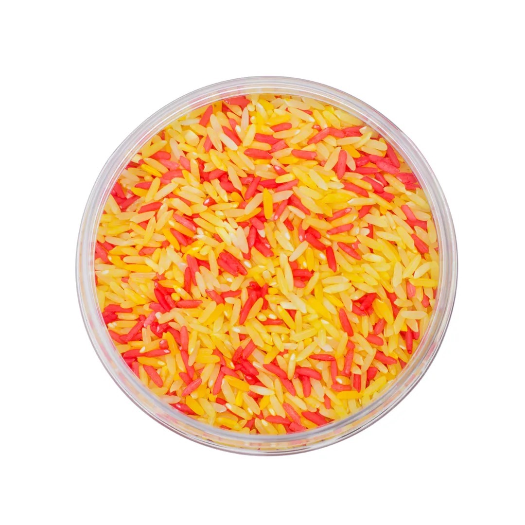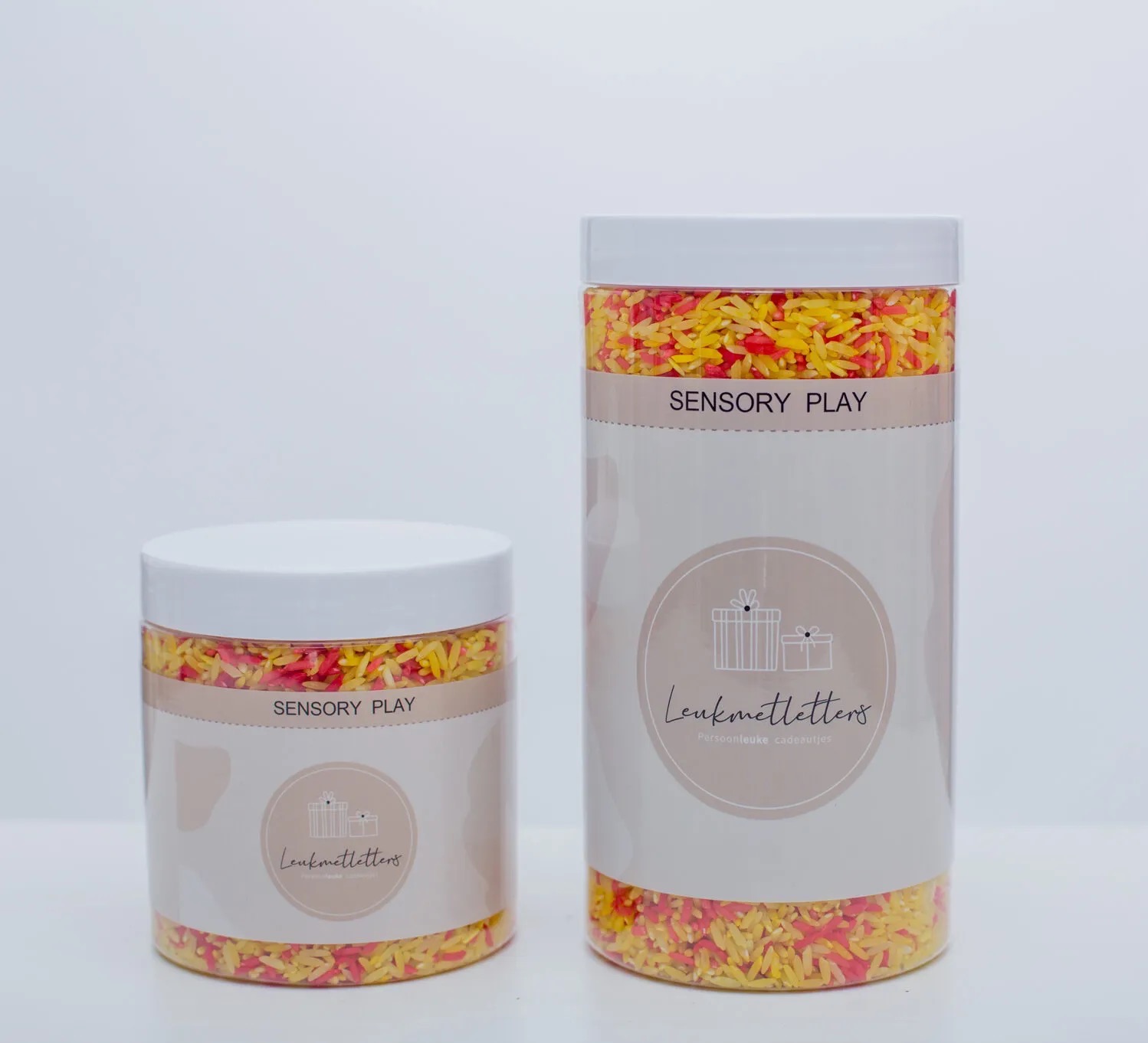 Omdat de rijst is gekleurd met voedselveilige kleurstof, is het niet schadelijk wanneer er per ongeluk een korreltje in de mond komt. Natuurlijk altijd spelen onder toezicht van een volwassene en geschikt vanaf 3 jaar.