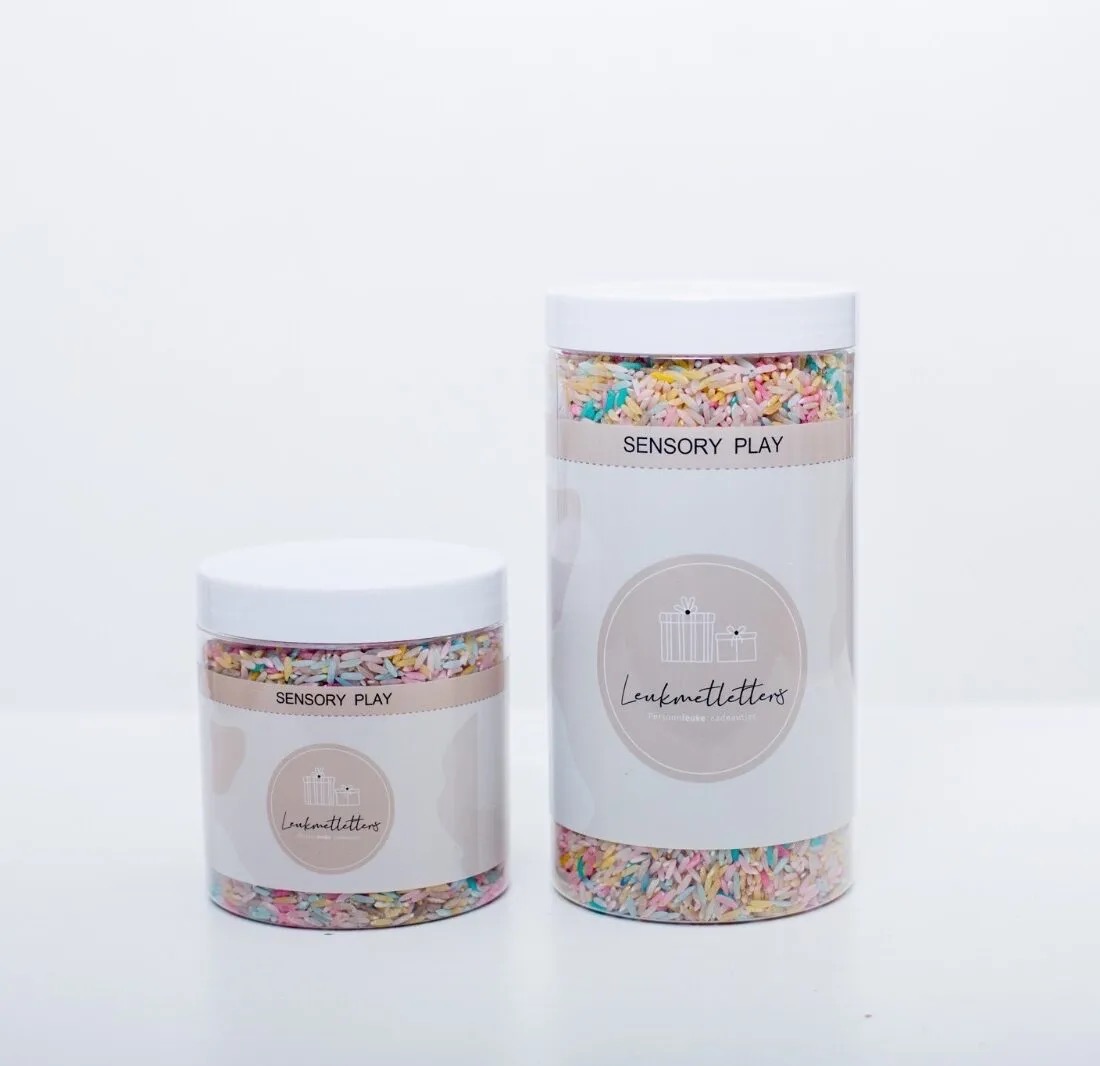 Omdat de rijst is gekleurd met voedselveilige kleurstof, is het niet schadelijk wanneer er per ongeluk een korreltje in de mond komt. Natuurlijk altijd spelen onder toezicht van een volwassene en geschikt vanaf 3 jaar.