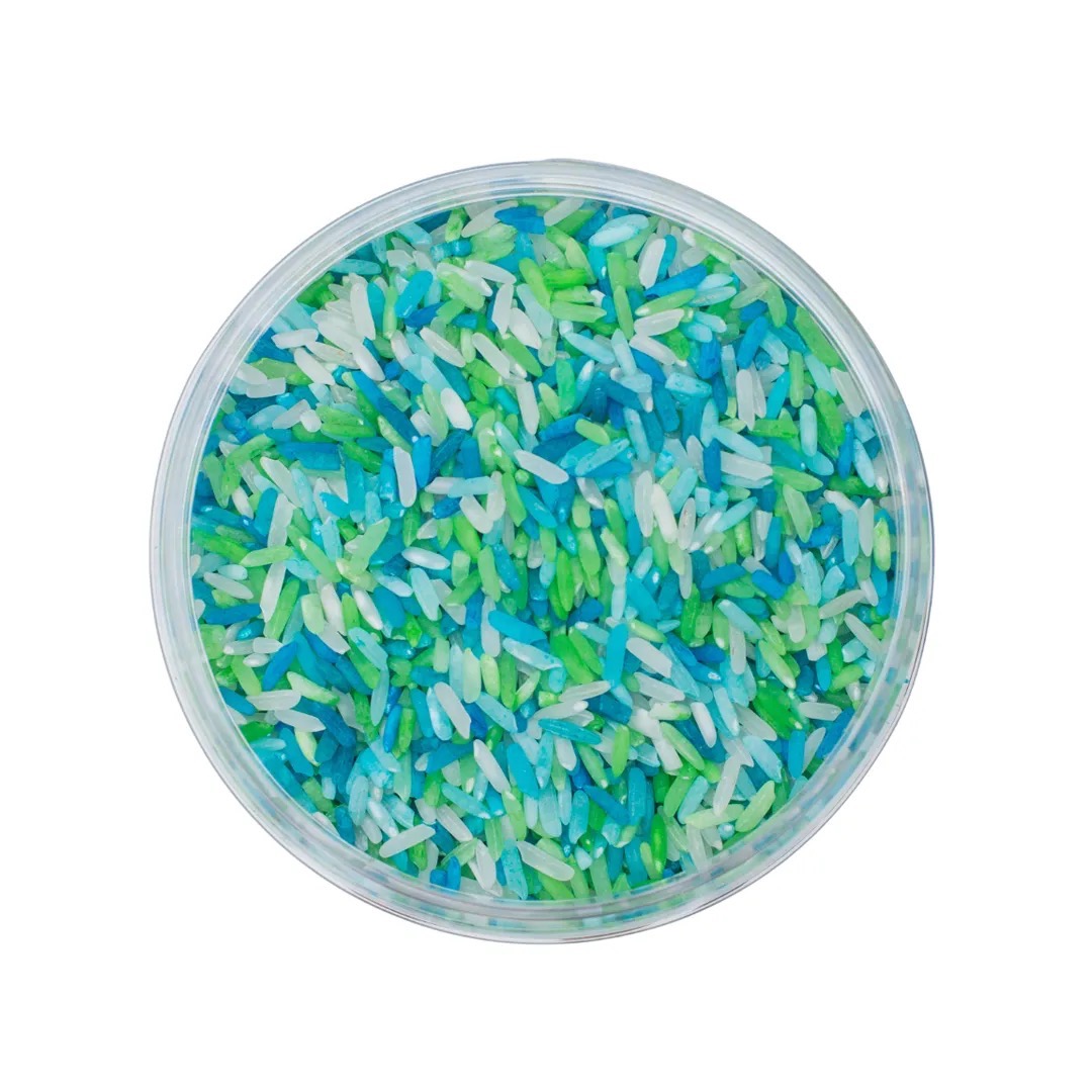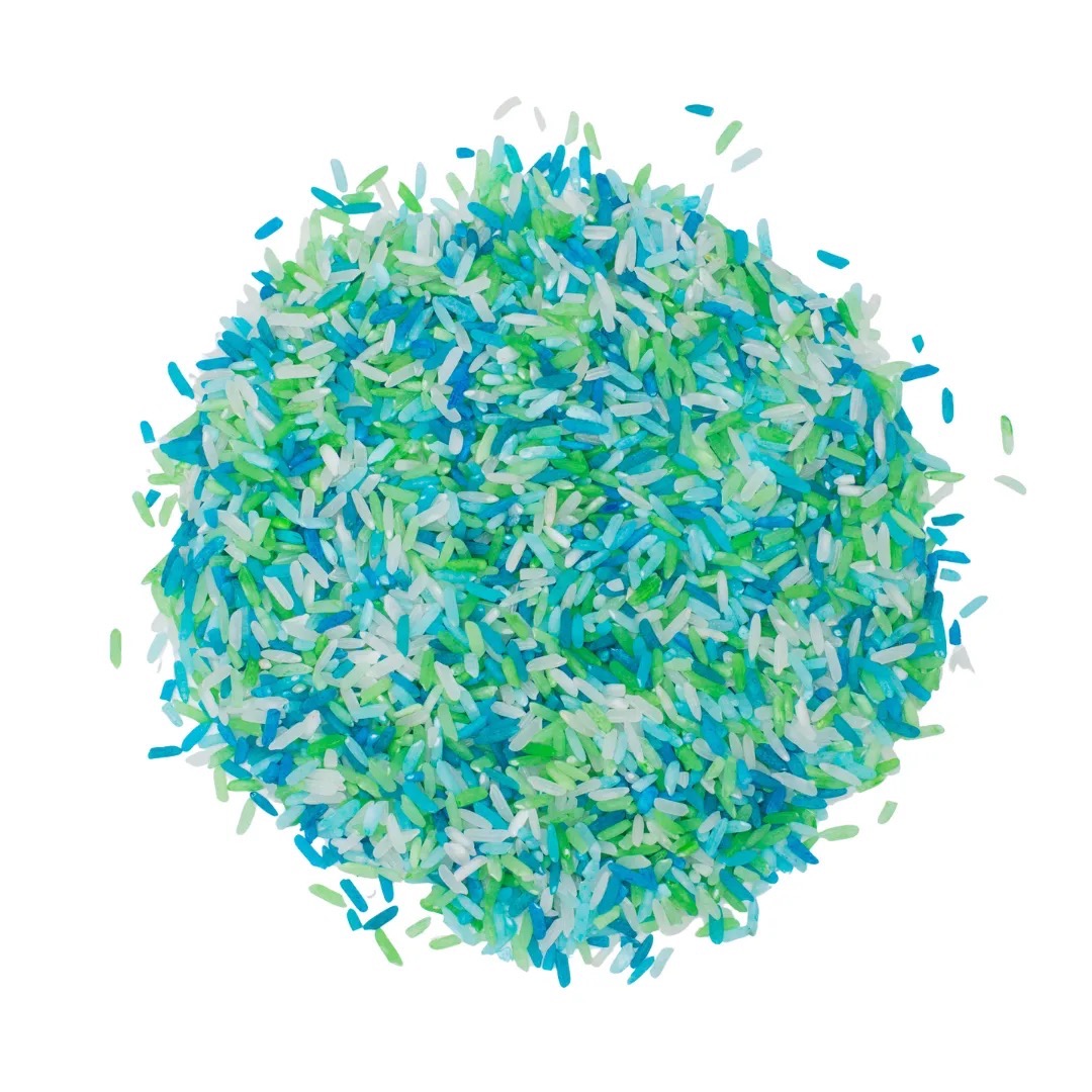 Omdat de rijst is gekleurd met voedselveilige kleurstof, is het niet schadelijk wanneer er per ongeluk een korreltje in de mond komt. Natuurlijk altijd spelen onder toezicht van een volwassene en geschikt vanaf 3 jaar.
